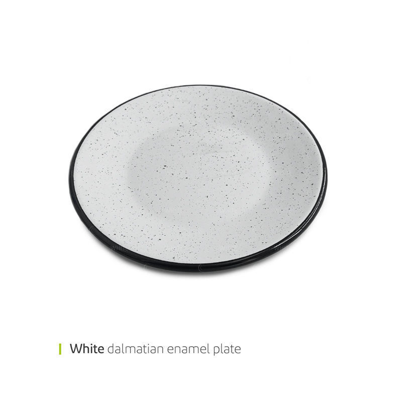 بشقاب لعابی تخت با طراحی زیبا برای مشتریان خاص پسند وایت پلیت طراحی شده که به علت مقاومت دربرابر حرارت کاربرد فراوانی دررستوران ها و کافه ها و حتی مصارف خانگی برای سرو انواع غذا دارد. جنس آن آهنی با روکش لعاب می باشد و قابلیت گذاشتن در فر را دارد.