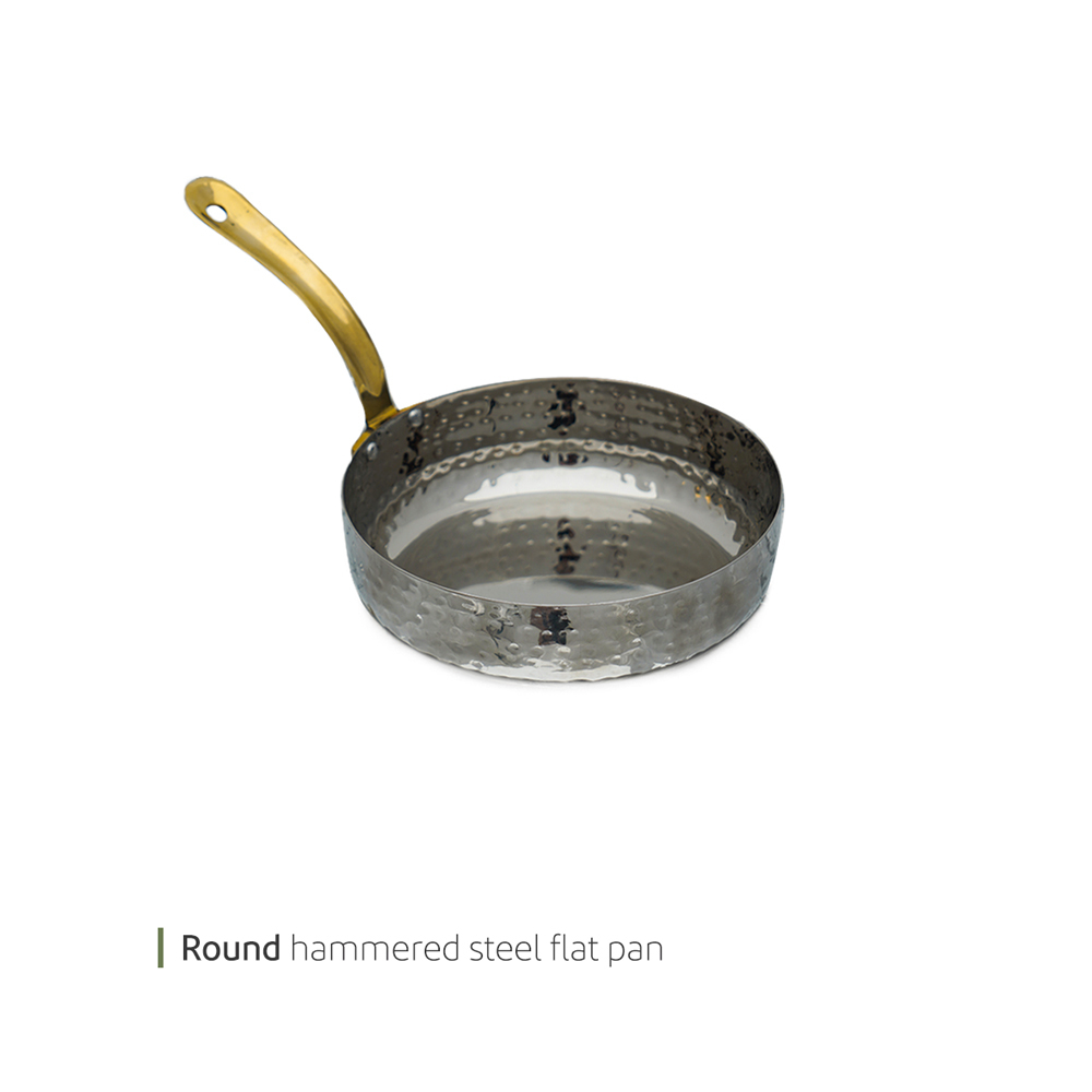 تابه های استیل چکشی با طراحی مدرن و ظاهری براق و دسته ی برنجی، انتخابی عالی برای سرو انواع غذاهای خاص، صبحانه و پیش غذا هستند.