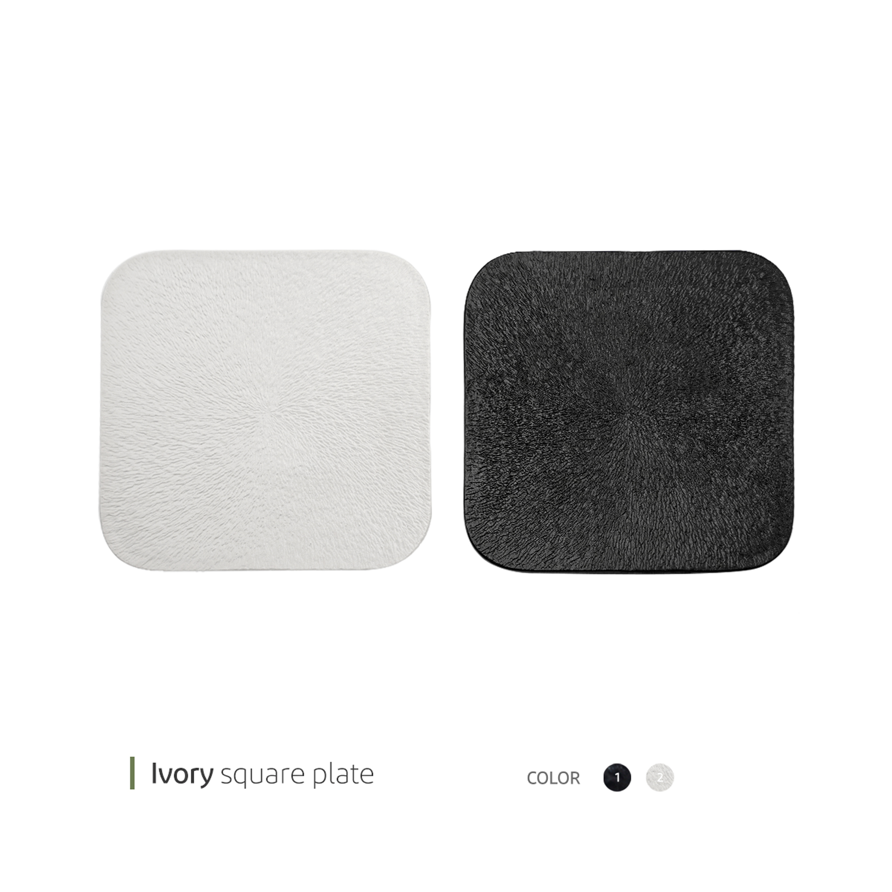 بشقاب مربع ایووری مناسب سرو انواع غذا اعم از استیک وغذای فانتزی و یا سرو انواع غذای ایرانی بوده و با رنگ سفید و مشکی ترکیب بی نقص از سادگی و ظرافت را ایجاد می کند.