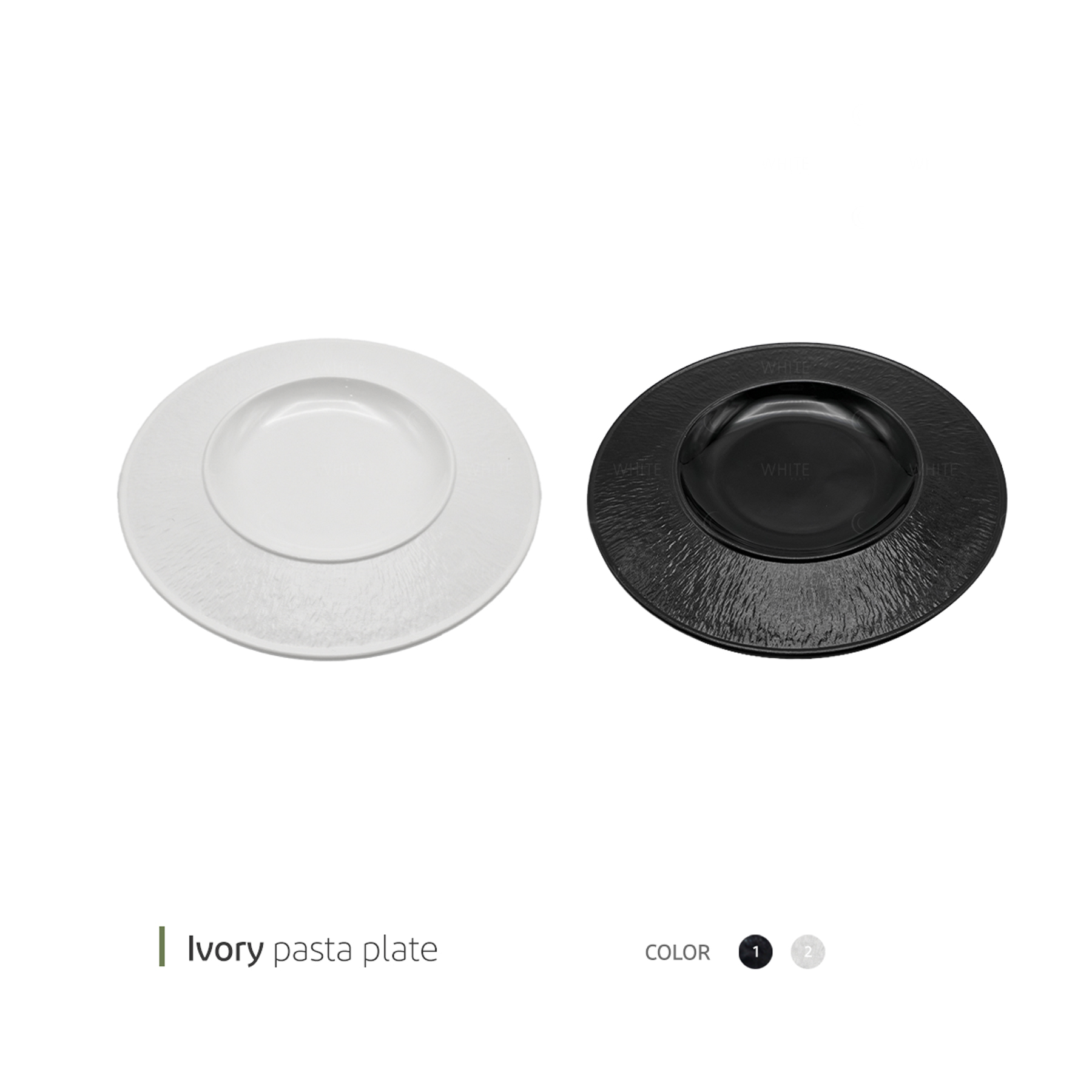 پاستا خوری ایووری مناسب سرو انواع سوپ و پاستا بوده و با رنگ سفید و مشکی ترکیب بی نقص از سادگی و ظرافت را ایجاد می کند.