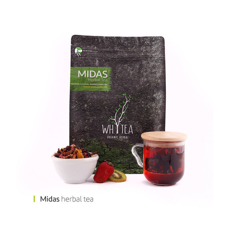 دمنوش میداس از مرغوب ترین میوه های استوایی اعم از توت فرنگی، نارگیل، کیوی می باشد که در درمان کم خونی و کبد چرب مناسب است